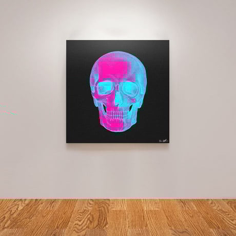 The ultimate presentation of the Pop Skullture series, a premium canvas edition for connoisseurs and collectors. These large canvas prints are made with high resolution digital latex printing for rich colors and fine details, available in gloss or matte finish. Wrapped on a stable stretcher frame made of sustainably sourced solid spruce wood - ready to hang. These are absolutely striking display pieces for your home or office. Personally signed/numbered in silver ink in the corner of the canvas, from a strict limited edition of 10 pieces. Includes certificate of authenticity.