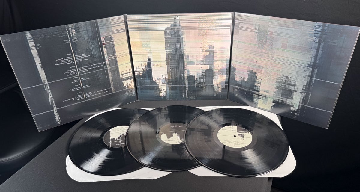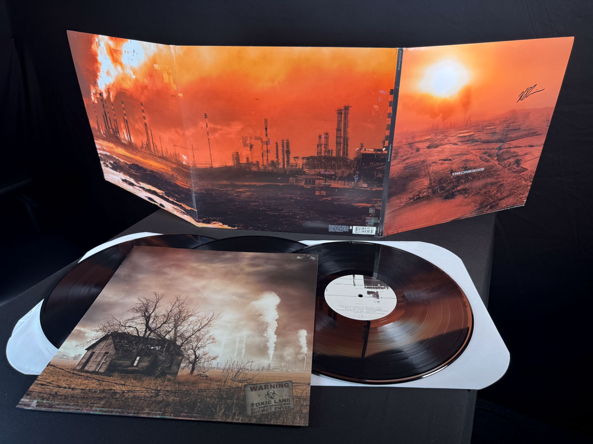 Full album package, personally signed by me on the front cover (if you would like the signature personalized, include it in the note with your order). Nine Inch Nails "Y34RZ3R0R3M1X3D" ("Year Zero Remixed"), art direction by Trent Reznor and me, design by me, artwork by Matt Santoro and me. A package that is very special to me, a fitting companion to Year Zero with three hefty records and a gatefold filled with gristly glitchy dystopian scenery. This is my original copy from the record label, you can see the barcode is scratched out on the back which is how you know it's one of the record label's promo copies, they scratched out barcodes on their promo stock so employees/etc couldn't resell them to record shops. Package is in very good condition, vinyl has never been played.