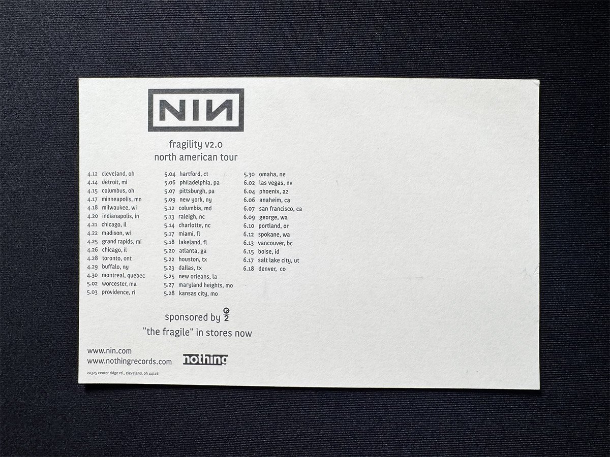 RARE: Nine Inch Nails 2000 Fragility v2.0 Tour Book + Promo Postcard signed by Me