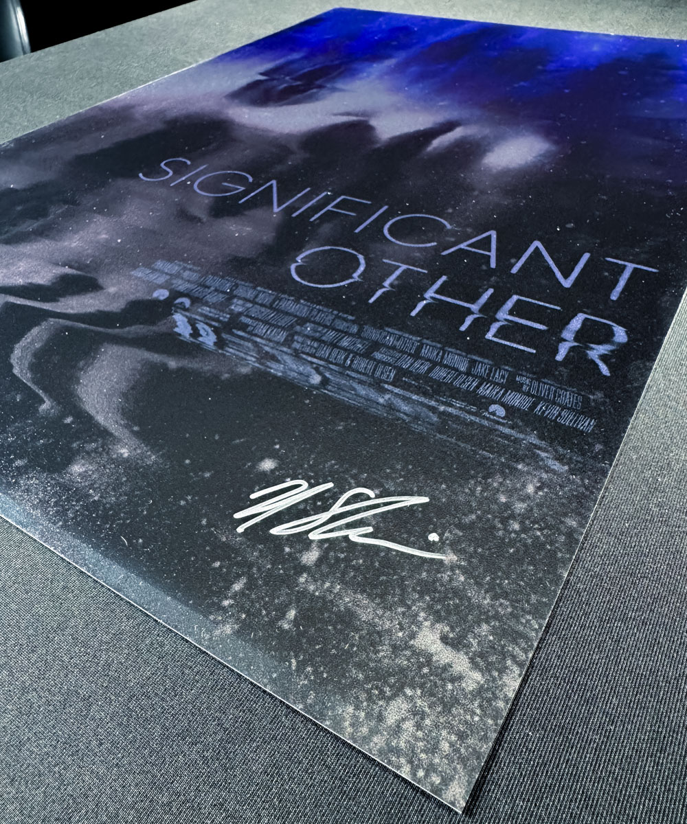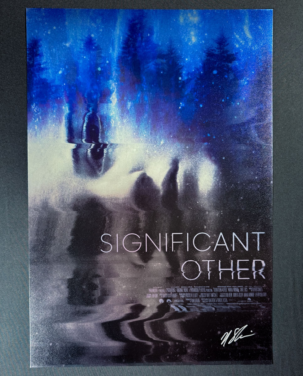 This is an ultra rare official special edition film poster I created for Paramount Pictures' 2002 sci-fi horror film "Significant Other." A very limited number of these were made on stunning heavy metallic foil paper that shimmers across the image as light hits it - hard to capture in a photo but you get the idea. These posters were sent to a few select film journalists to promote the film, and the studio sent me a few of them. I have no idea how much these are worth or how many were made, they're a bit of an enigma, I have never seen them anywhere, there's no trace of them on eBay. This one is signed by me and is in pristine condition, it was shipped to me flat and has been preserved that way for the past few years.